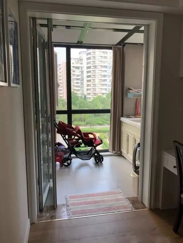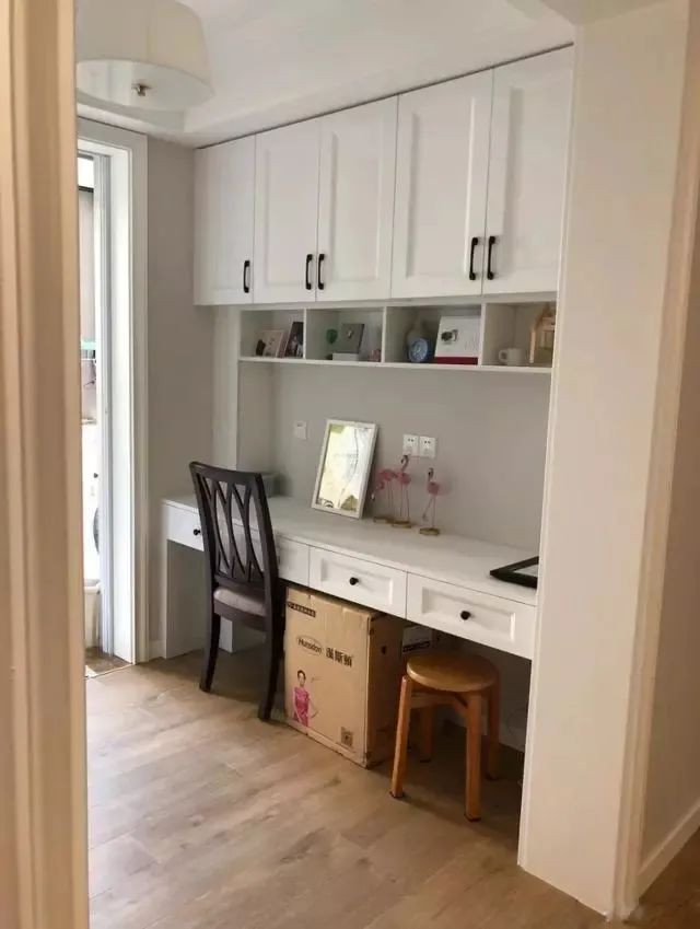 工作区平时主要是孩子写作业的地方,我们也能更好地监督。通风半年才敢搬进来,主要也是考虑到孩子。现在室内没有异味了,我们住着也更开心。外面有个挺大的阳台,主要用来洗衣服。